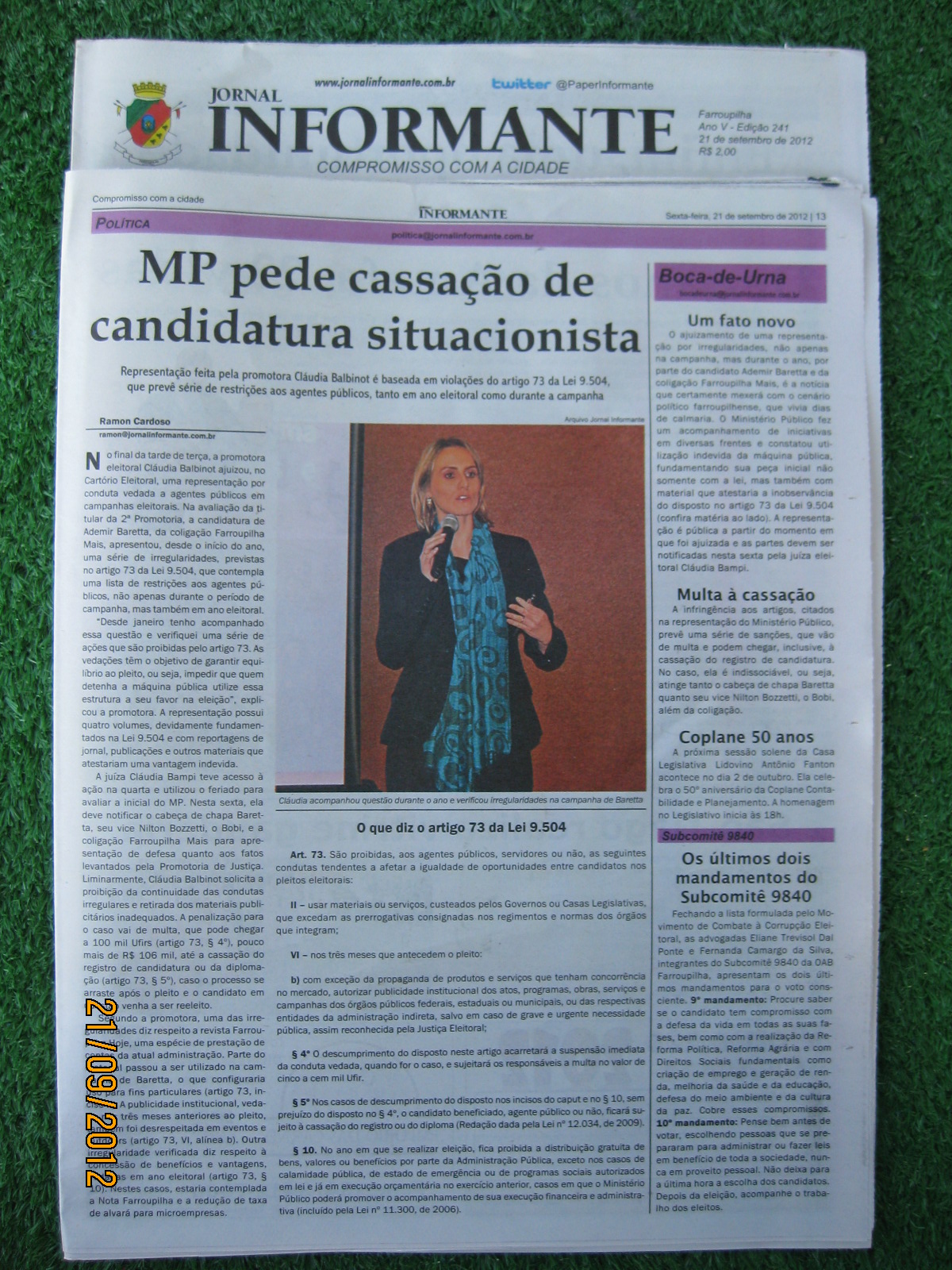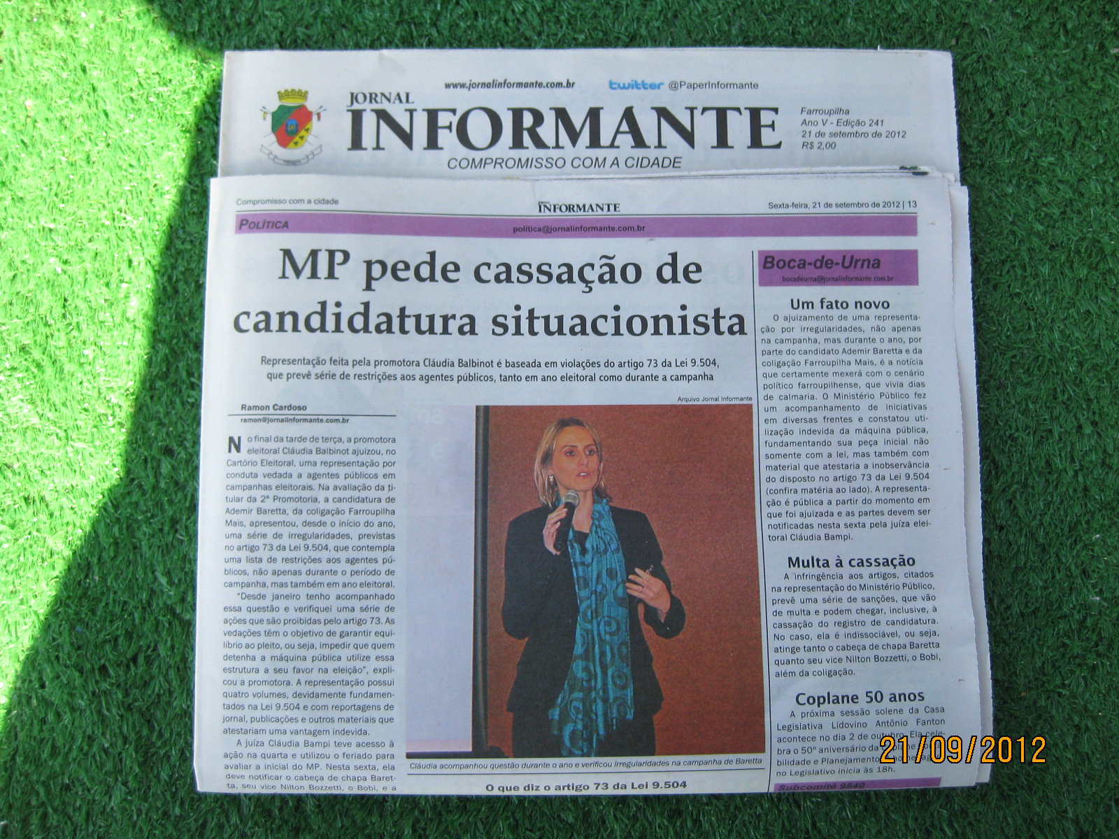 Jornal INFORMANTE pag. 13 Edição Nº 241 de 21/09/2012.